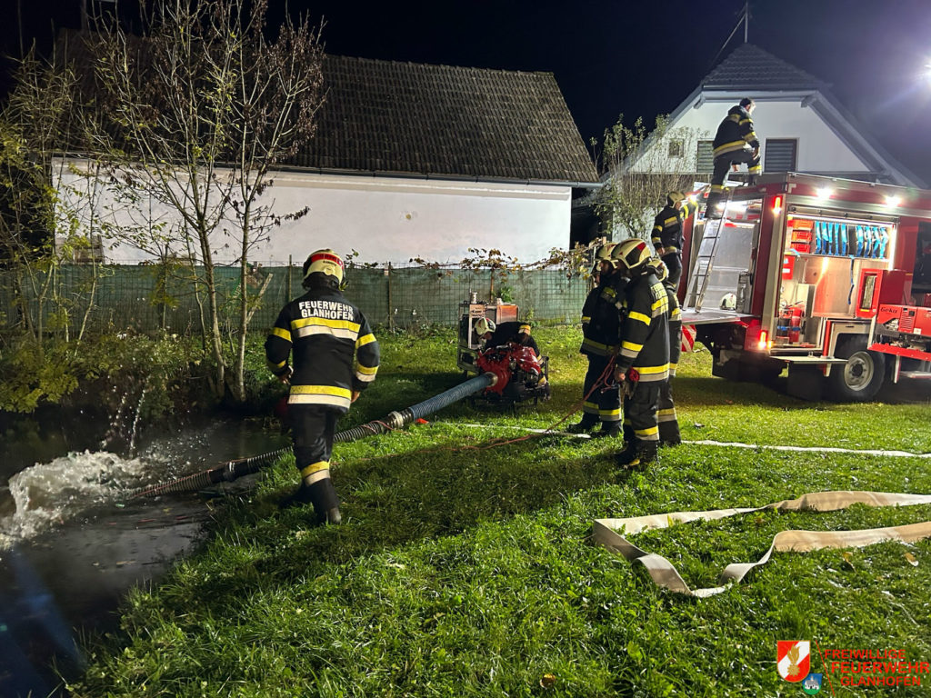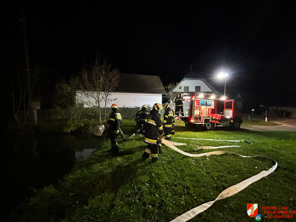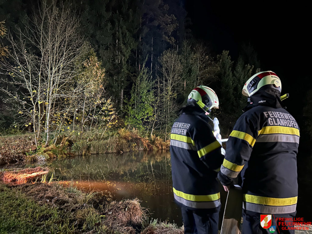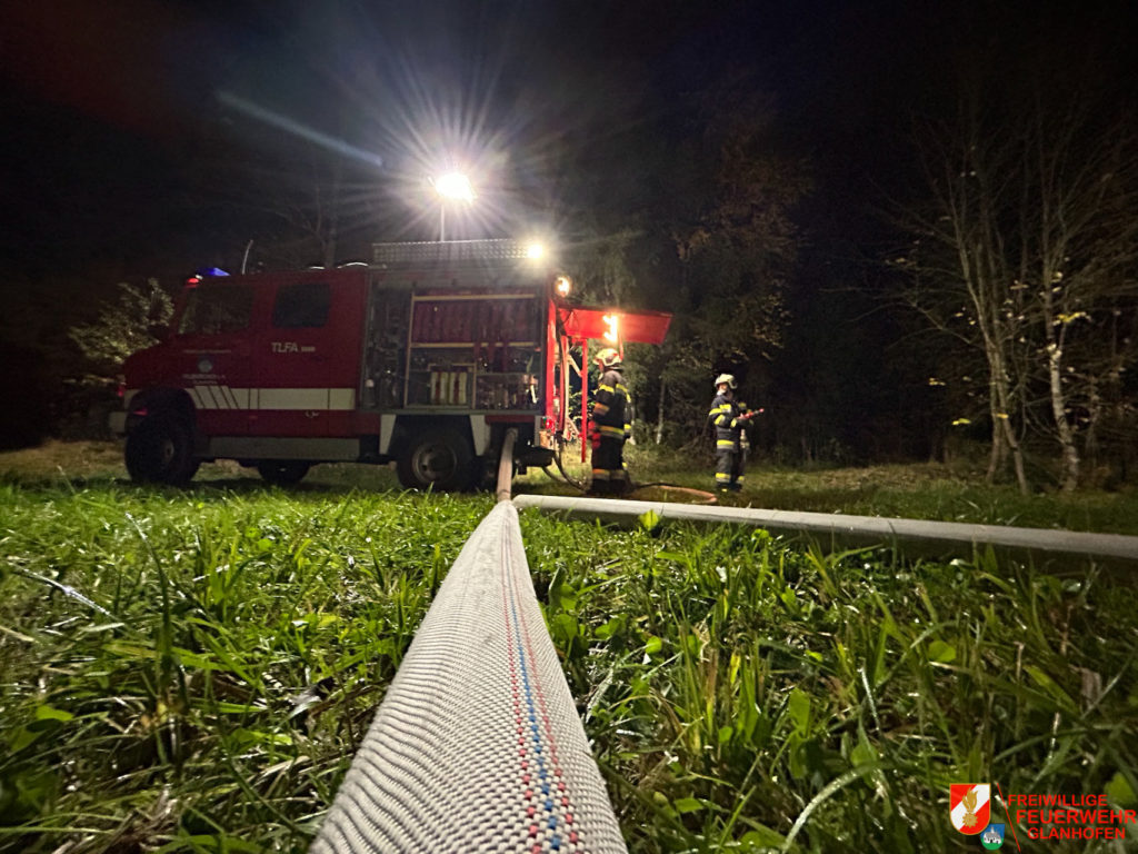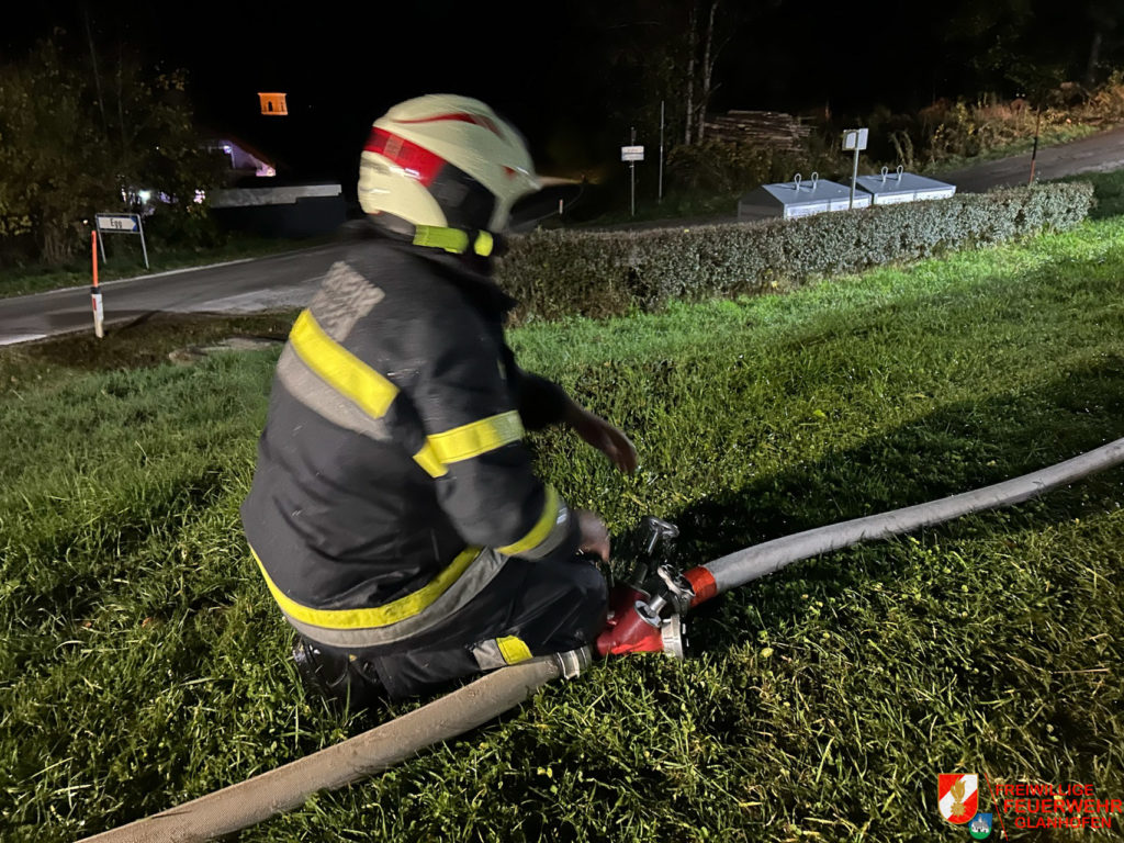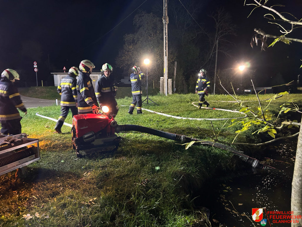 Außerdem wurde der Wasserbezug aus dem Moser Teich mittels Tragkraftspritze (TS) beübt. Im Zuge dessen gab es auch eine kurze Auffrischung zur Handhabung der TS.